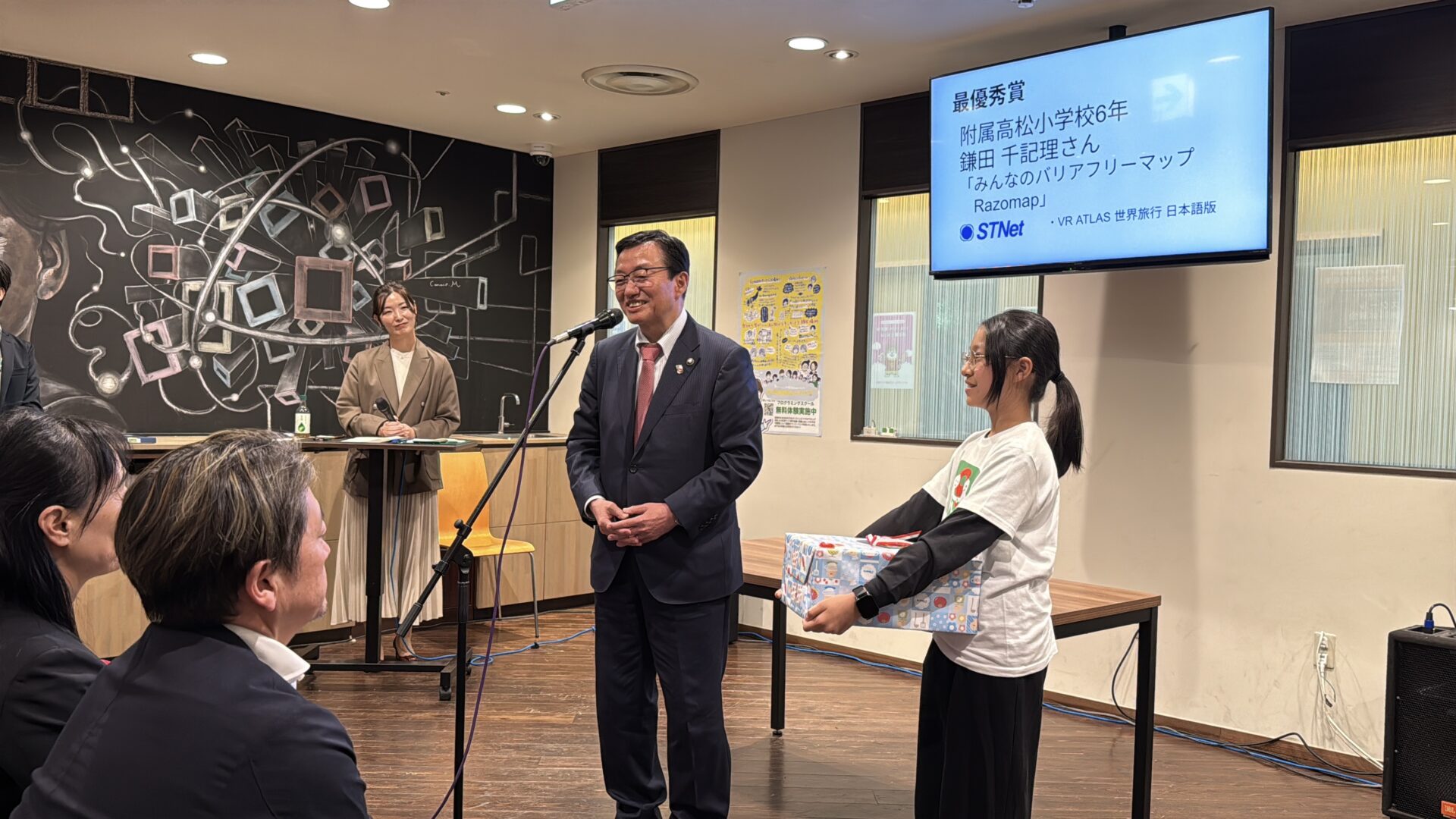 11月2日に開催されたたかまつKIDSプログラミングコンテスト高松予選・決勝プレゼンテーションにおいてNESTON Kids STEAM School(つくりば)受講生鎌田さん(附属高松小学校6年)が見事最優秀賞を受賞しました。