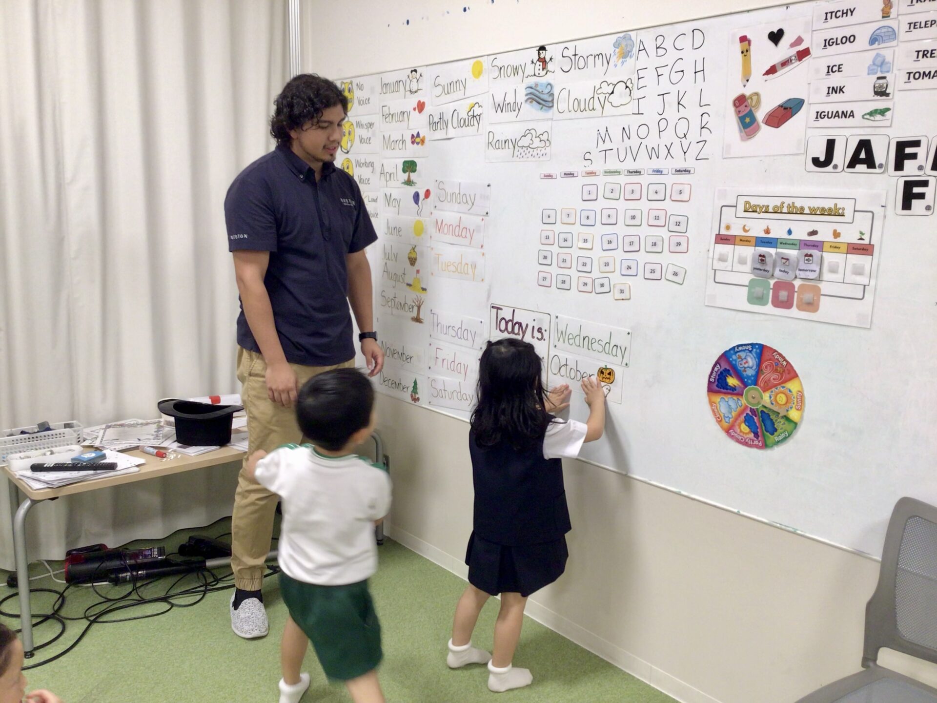 幼稚園クラスでは、毎日授業の始めにサークルタイムを行っています。