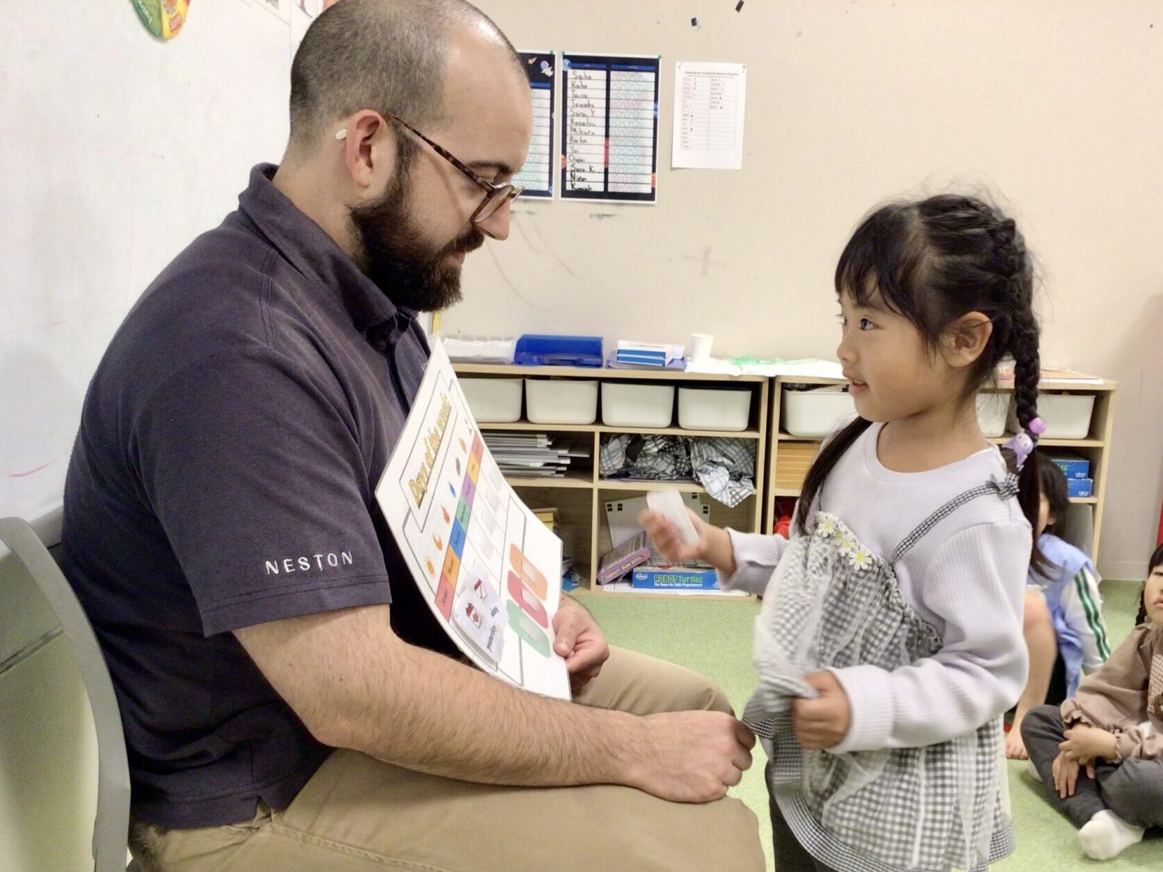 In the kindergarten class, we have circle time at the beginning of each lesson every day.