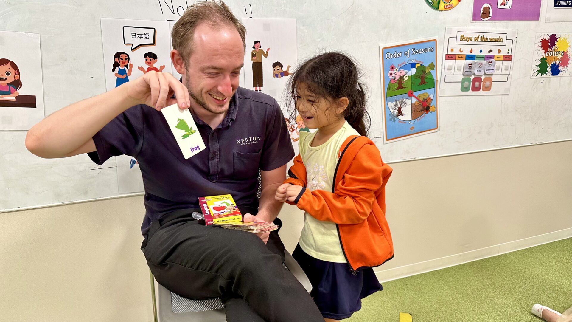 フォニックスのクラスでは、ジャンケンやカードを使ったゲーム形式にするなど、生徒たちが楽しめる工夫がされています。