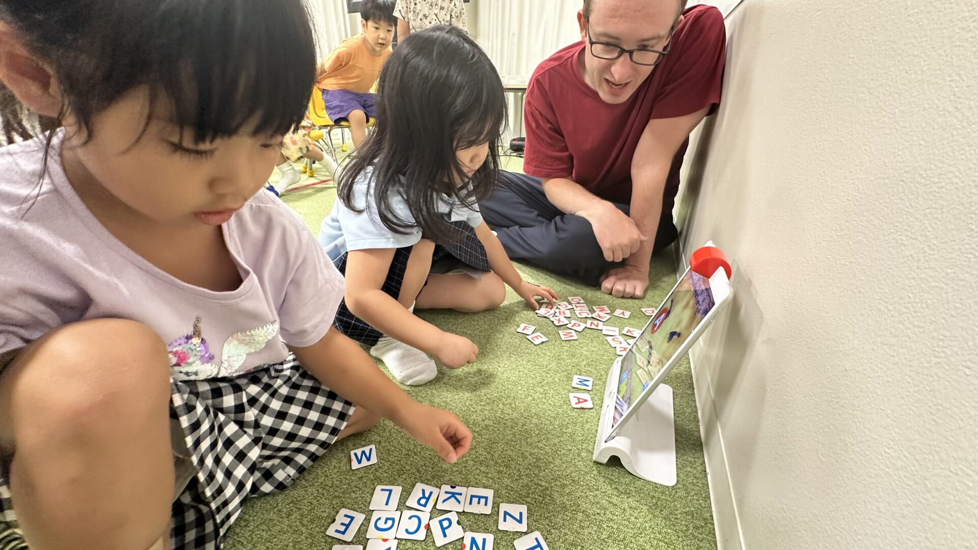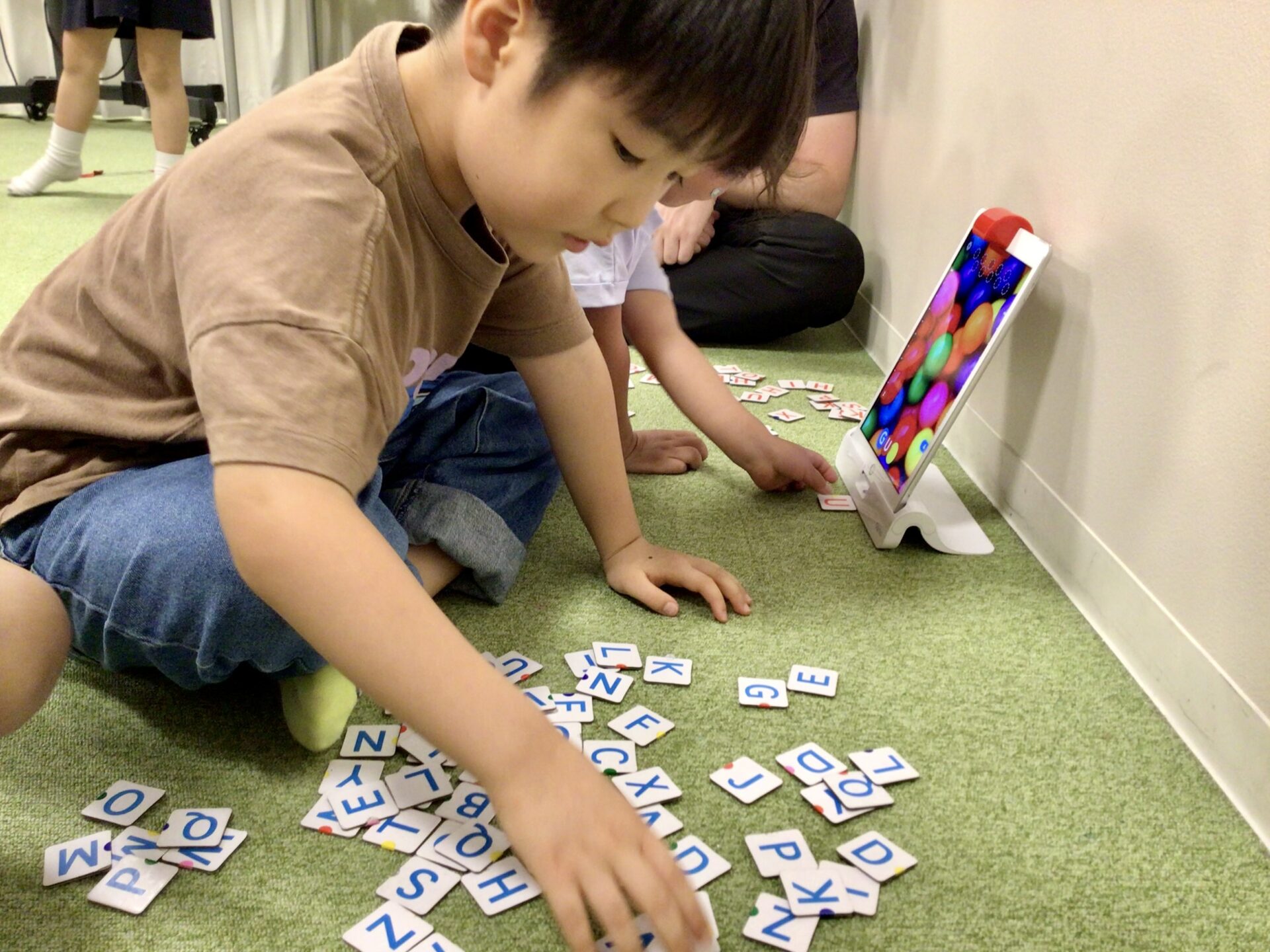 幼稚園クラスでは、iPadで「osmo」というソフトウェアを使いながらフォニックスを学びました。