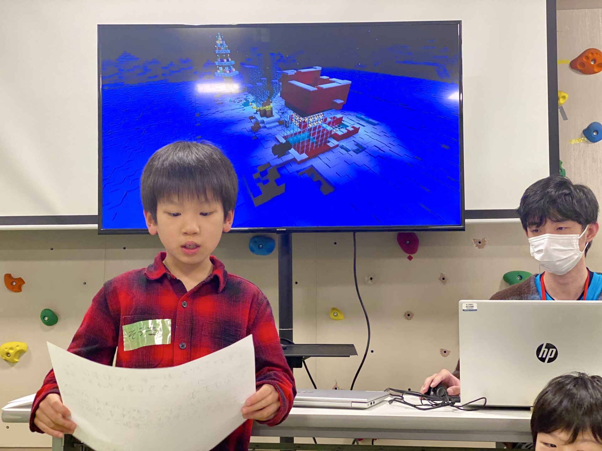 マインクラフト上でクリスマスイルミネーションを作り、みんなの前でプレゼンテーションを行いました。