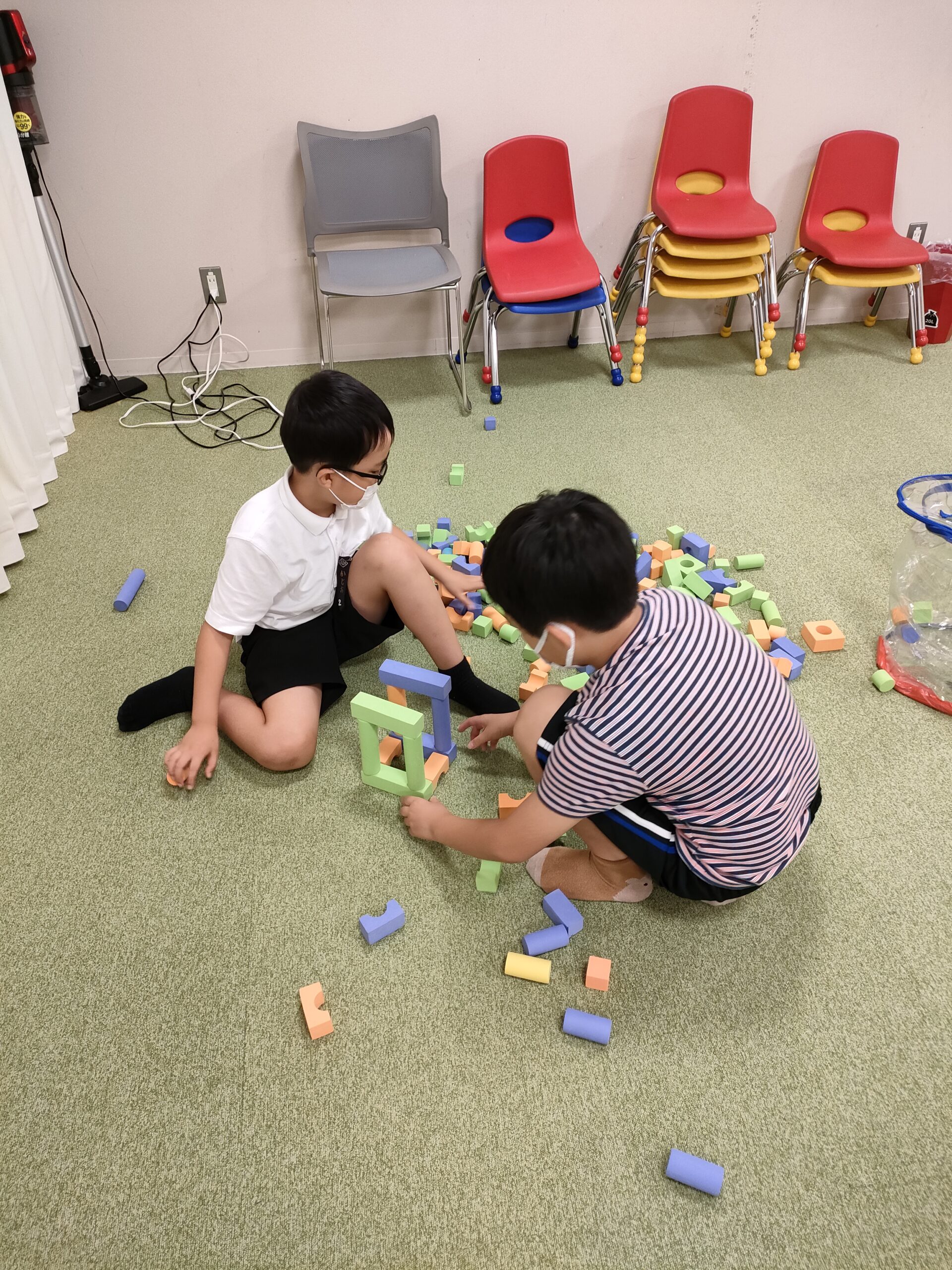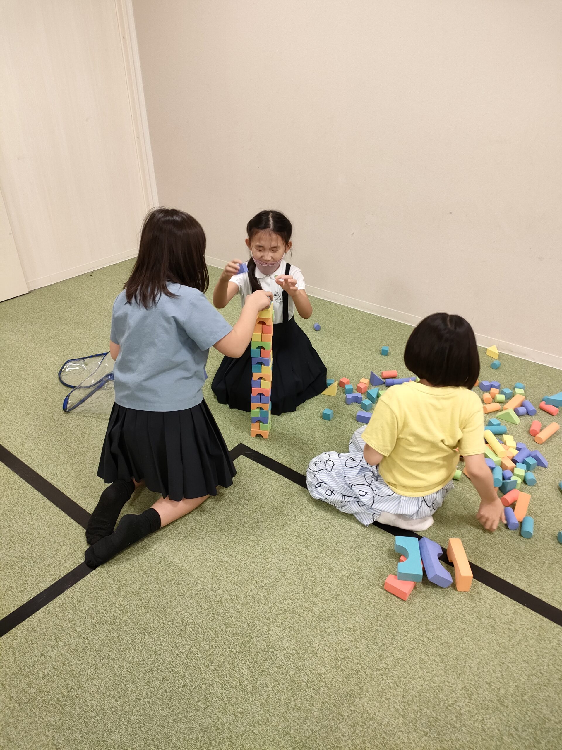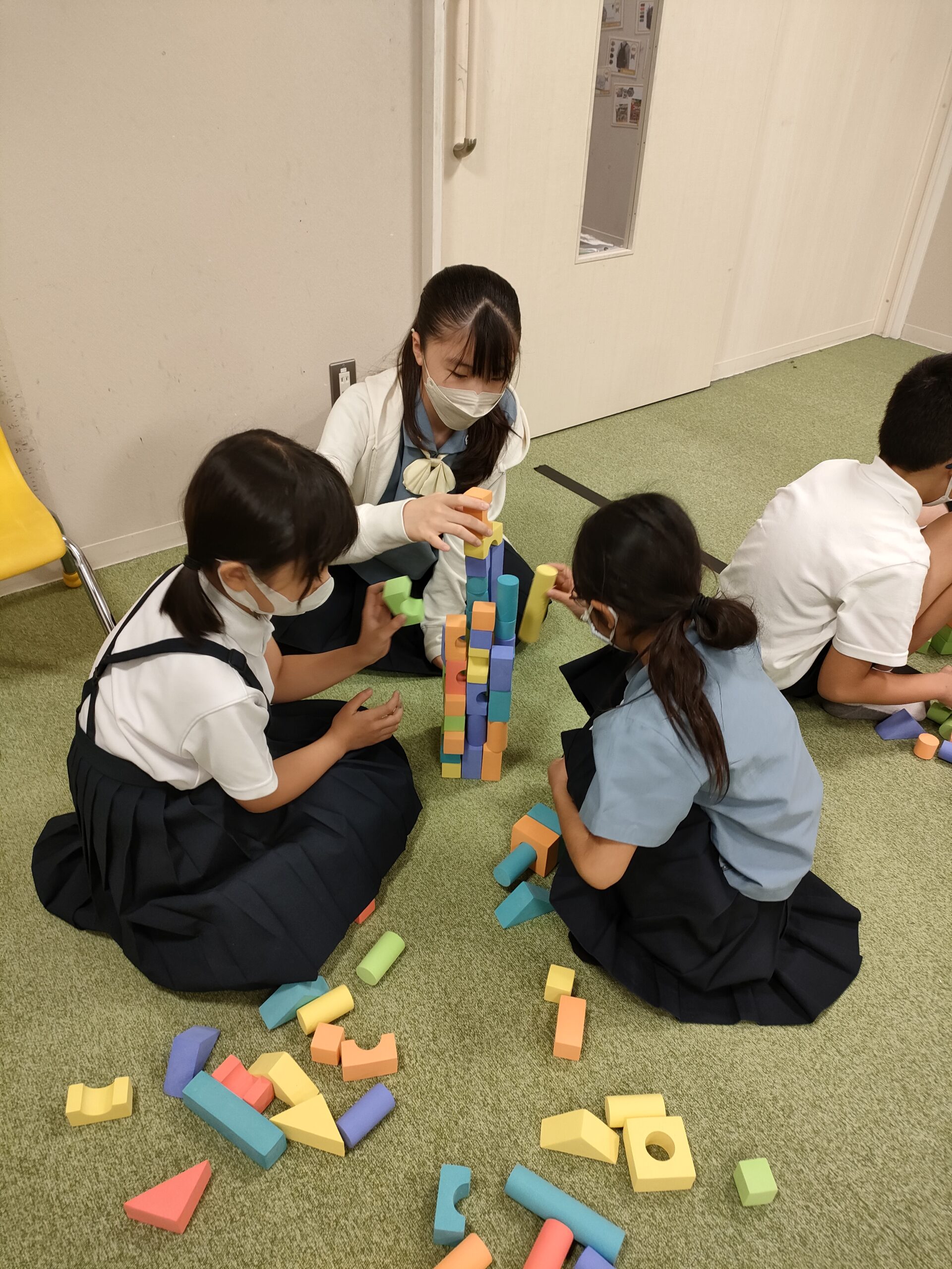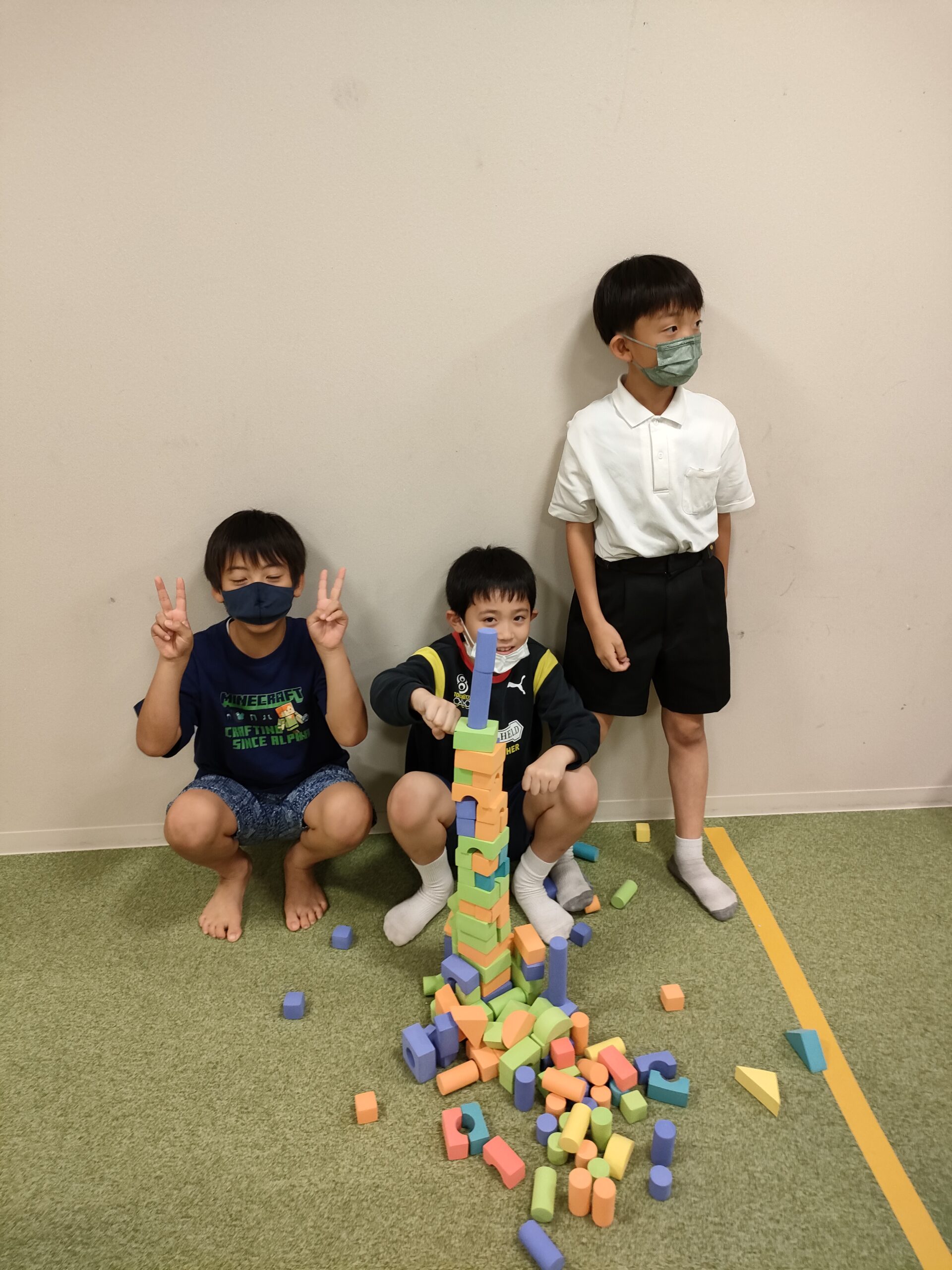 インターナショナルカルチャーのクラスではドバイにある~世界一高いビル~ブルジュ・ハリファについて学び、10分間で作れる一番大きなものをクラスで作り発表しました。