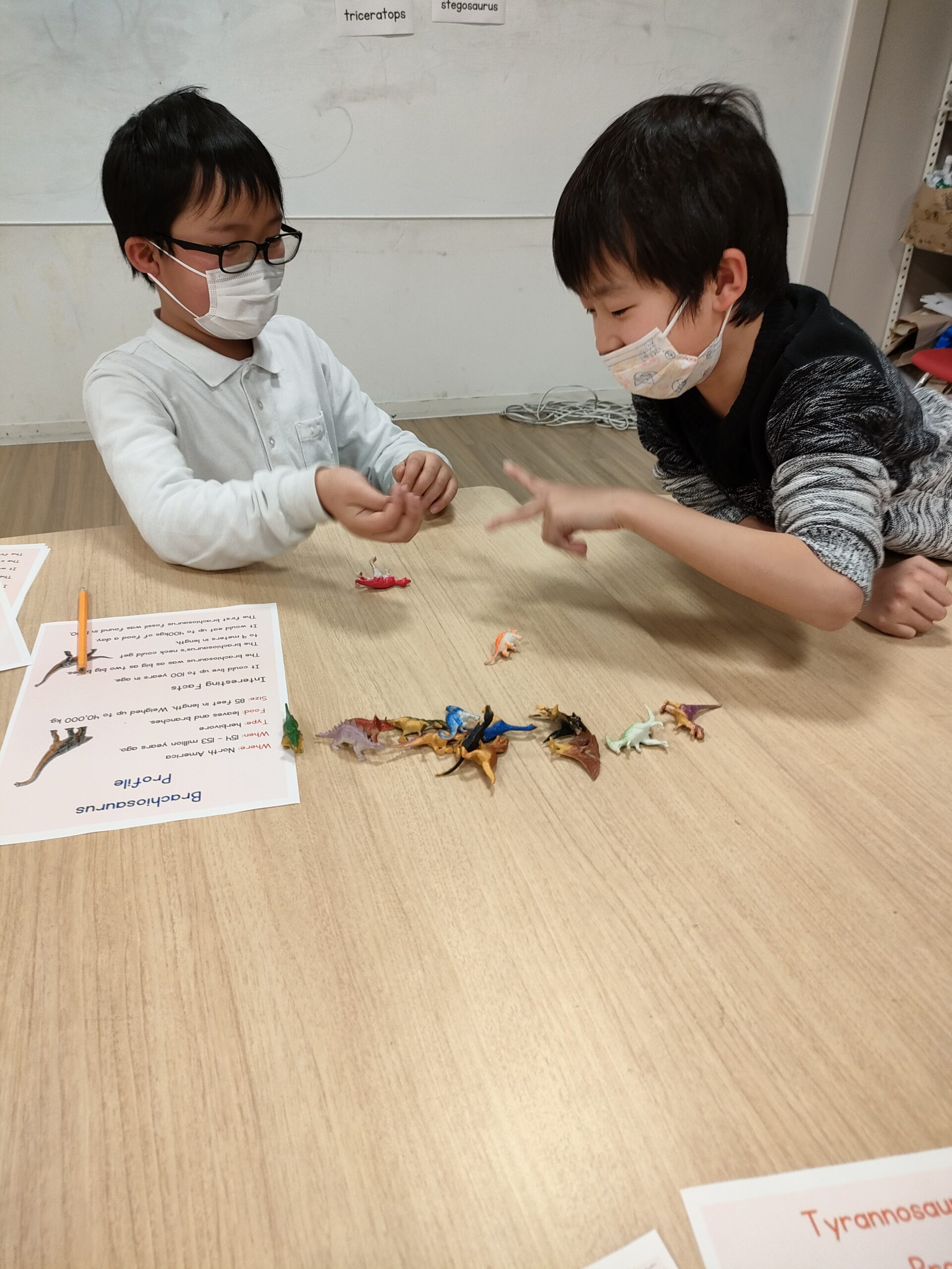 2月は恐竜について学び、恐竜の化石を作りました。恐竜を探したり、小惑星衝突のシミュレーションにも挑戦しました。
