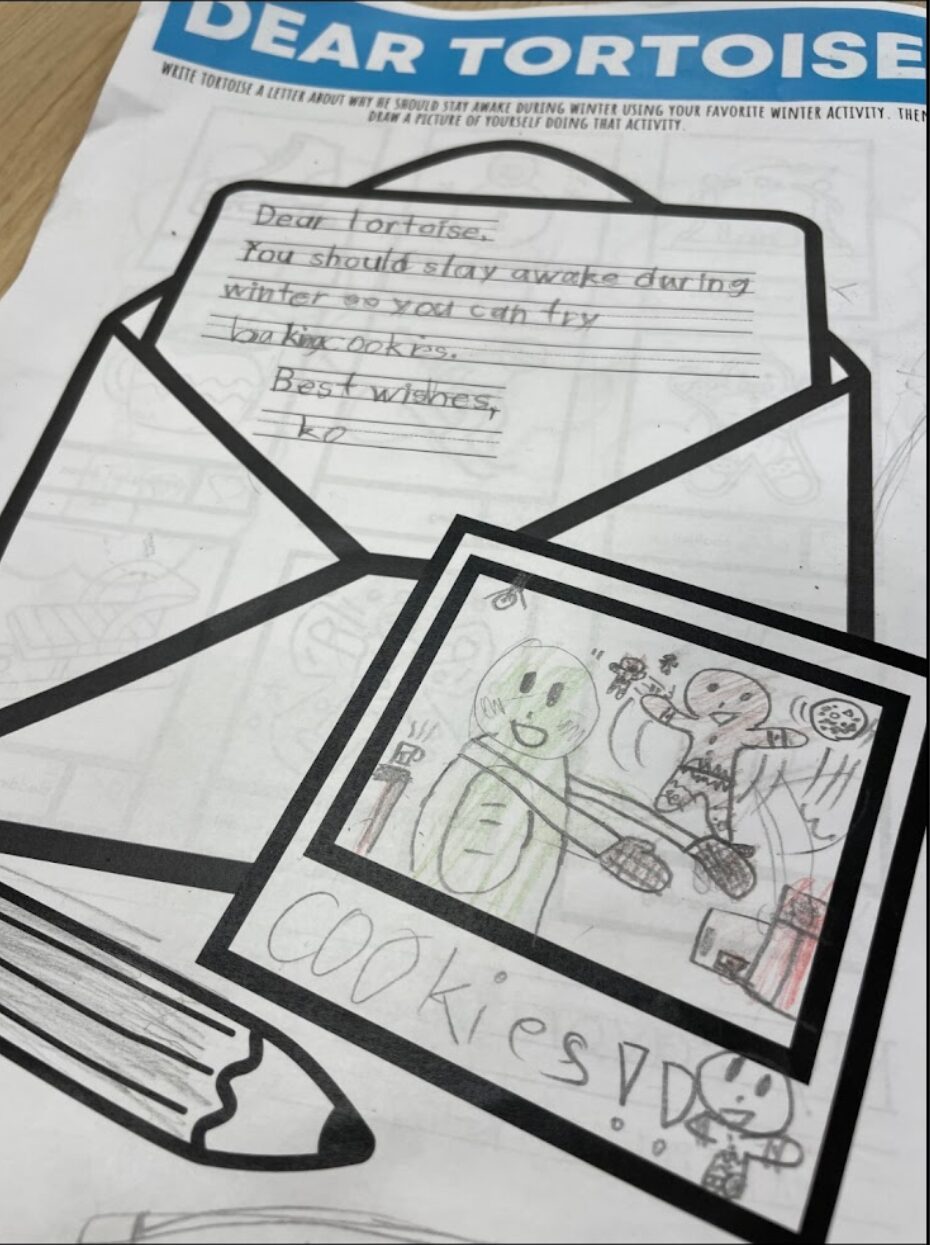 Advanced students played in a story walk about a snow day and then wrote their own story about what they would do if school got cancelled because of too much snow.
