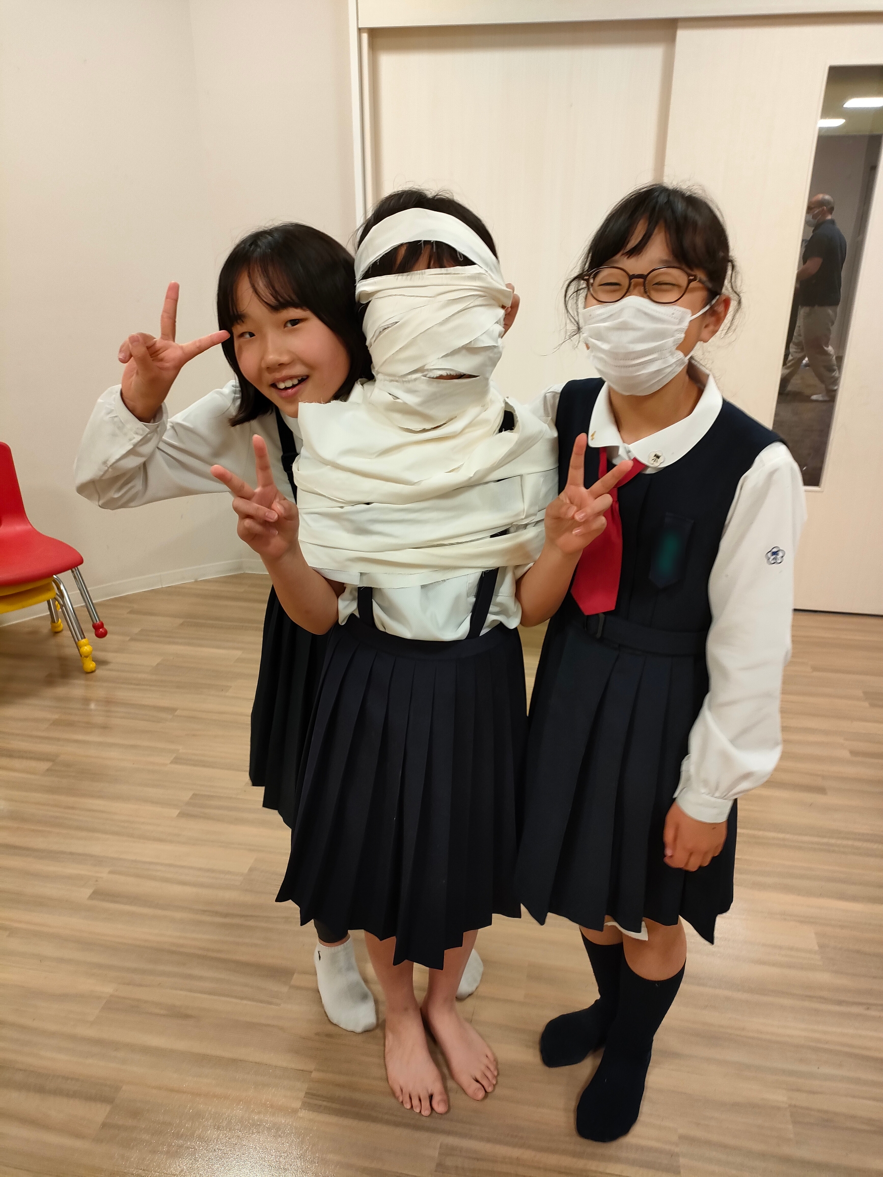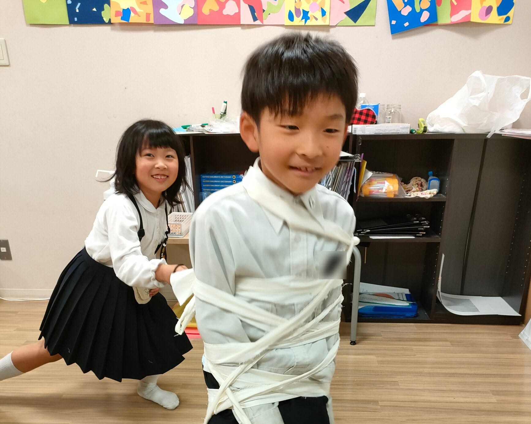びました。生徒たちは学んだ方法で友達をミイラにかえました!