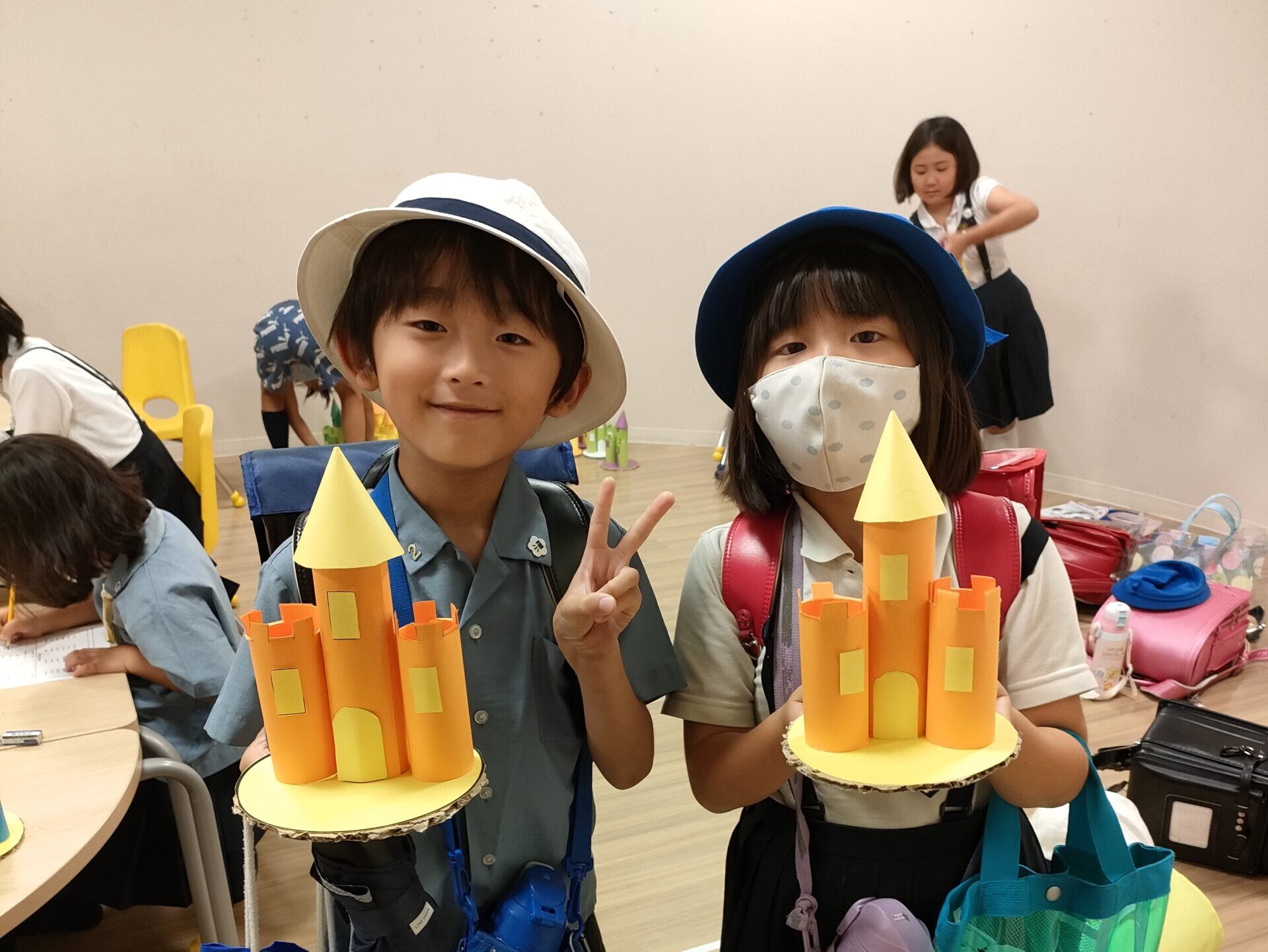 ワールドトラベラーのクラスで、生徒たちはイギリスのお城について学びました。自分たちのお城を作ってバトルをしたり、お城ジェンガで遊んだりしました。
