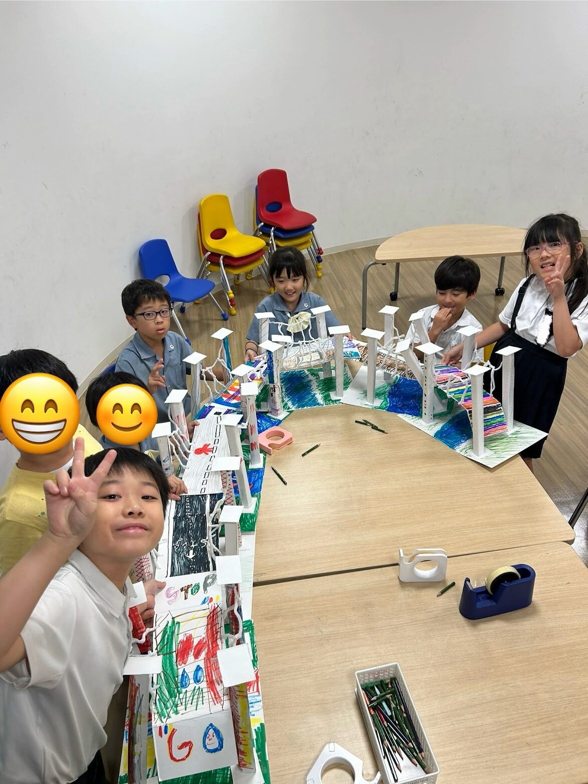 9月の月間テーマは「建物とまちの中」でした。そのため、ビルダーズワークショップでは、生徒たちは自分たちで吊り橋を作りました。吊り橋の構造や、どのように建設され、補強されているのかについて学びました。